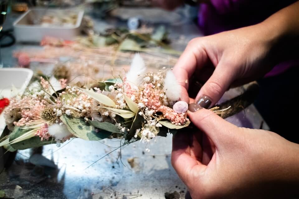 In unseren Flower Loop-, Türkranz- und Adventskranz-Workshops lernst du die Grundlagen der floralen Gestaltung kennen. Du erfährst, welche Materialien sich am besten eignen, wie du harmonische Farb- und Formkombinationen findest und wie du mit einfachen Techniken beeindruckende Ergebnisse erzielst. Natürlich stehen wir dir mit Tipps, Tricks und ganz viel Erfahrung zur Seite – Schritt für Schritt.